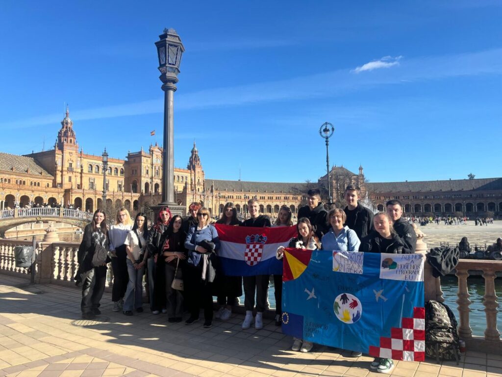 Grupa od 14 učenika 3. i 4. razreda naše škole smjera Dizajner odjeće, Komercijalist i Prodavač uputila se u kasnim večernjim satima 14. veljače 2026. godine na putovanje u Španjolsku. Na mobilnosti ih prate profesorice Martina Krstičević i Renata Štefan Barišić. Učenici će dva tjedna boraviti u Sevilli gdje će odrađivati stručnu praksu u španjolskim tvrtkama u okviru Erasmus+ projekta. Sudjelovanje u mobilnosti pruža učenicima izvrsnu priliku za stjecanje međunarodnog iskustva, razvijanje stručnih vještina, jačanje komunikacijskih i socijalnih kompetencija, te upoznavanje španjolske kulture, jezika i tradicije.