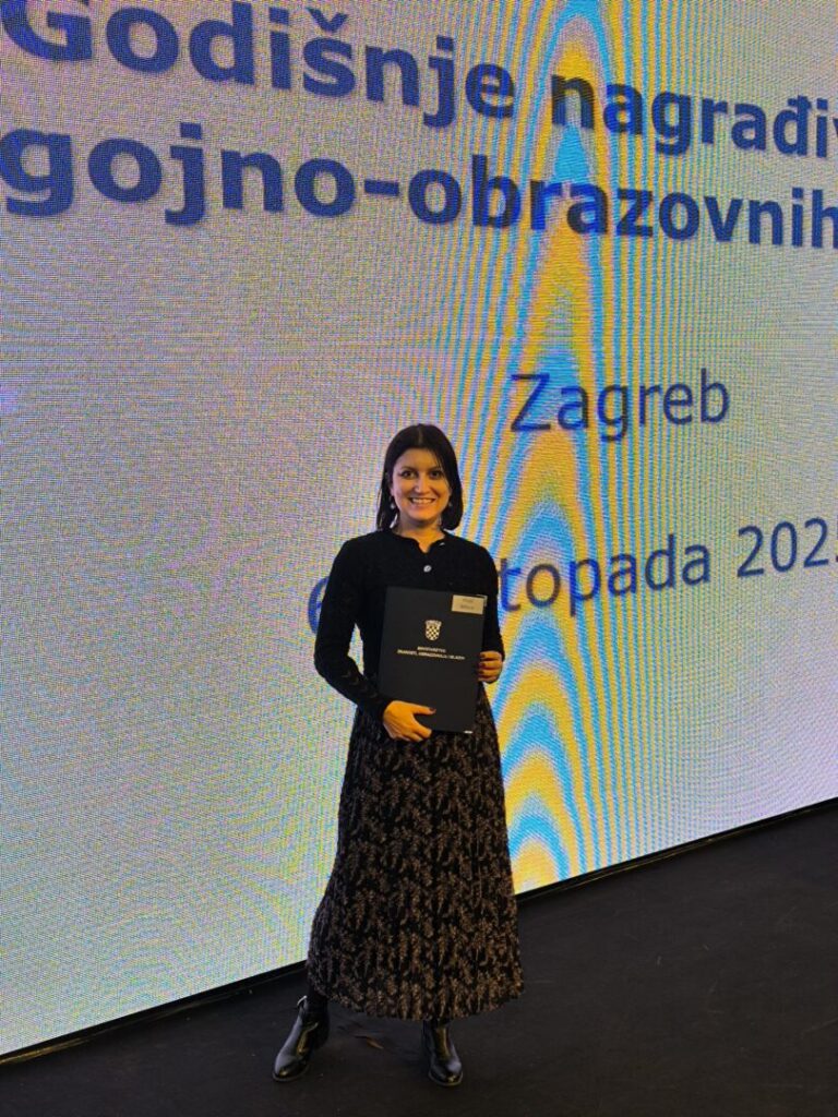 Od srca čestitamo kolegici na ovom ponovljenom vrijednom priznanju, koje potvrđuje njezin izniman doprinos radu škole, učenicima i struci, ali i obrazovanju u cjelini.
